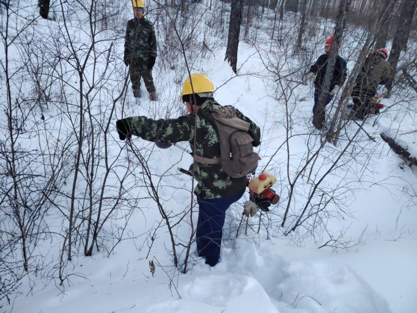 規(guī)范操作不松懈,筑牢安全“防護墻”。在各營林作業(yè)現(xiàn)場,寒風(fēng)凜冽卻擋不住職工們的工作熱情。大家嚴(yán)格遵守冬季營林作業(yè)規(guī)程,統(tǒng)一佩戴安全帽穿梭在林間,有條不紊地開展林木修枝、病腐木清理、林地撫育等工作。油鋸手嚴(yán)格執(zhí)行“先檢查、再啟動、穩(wěn)操作”的流程,精準(zhǔn)把控作業(yè)角度;撫育隊員踩著厚雪,手持工具對林間枯死木、被壓木及對目的樹種生長存在影響的進行有序清理、歸堆。從器械檢查到流程落實,每一個環(huán)節(jié)都嚴(yán)謹(jǐn)規(guī)范,安全帽上的反光條在皚皚白雪中格外醒目,成為林海間一道守護安全的風(fēng)景線。