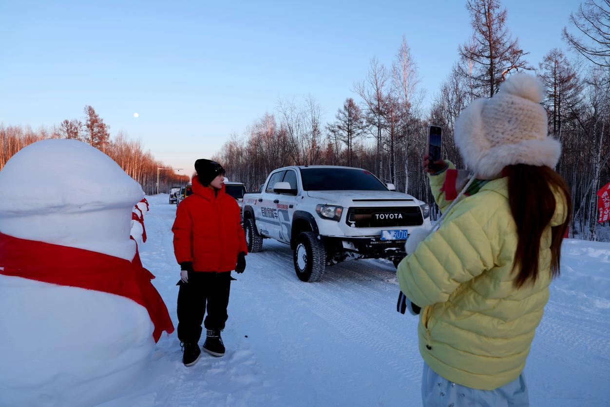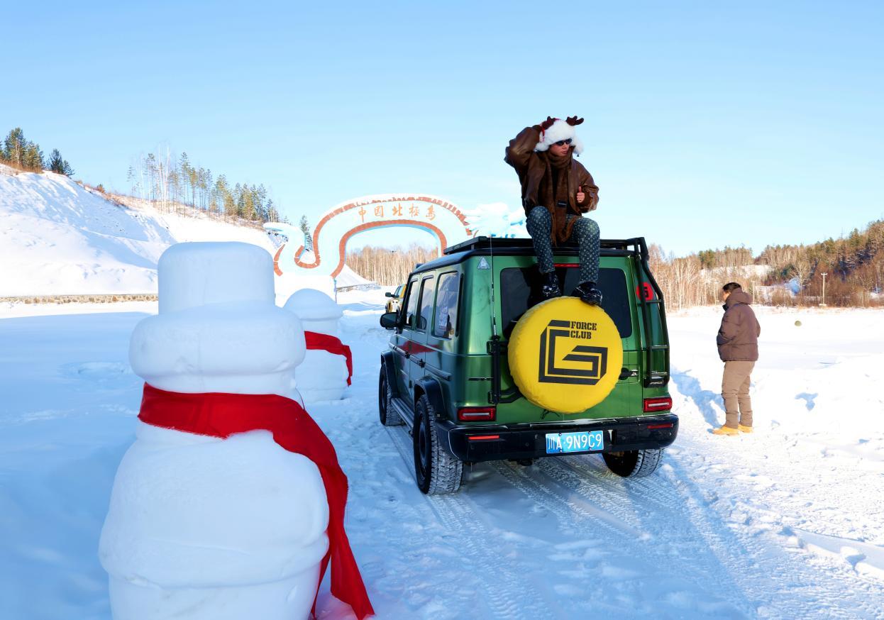 當(dāng)日中午,隨著車隊緩緩駛?cè)氡睒O島景區(qū)南門,美麗的雪地廣場瞬間被熱情點燃。游客們紛紛走下車,不顧零下數(shù)十度的嚴寒,或在松軟的雪地上玩起汽車漂移,或與雪人合影留念,或揚起漫天雪花享受雪的輕撫,汽車馬達的轟鳴與歡聲笑語交織回蕩,讓這片銀裝素裹的天地化作歡樂的海洋。