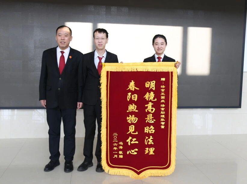 黑龍江經(jīng)濟網(wǎng)訊(董慧瑩 張智雪)1月15日,青岡縣人民法院王國慶法官收到當事人贈予的錦旗,“明鏡高懸昭法理 春陽煦物見仁心”十六個金字熠熠生輝,既是當事人對案件審理的由衷認可,更是對法院司法工作的高度贊譽,為冬日里的法院增添暖意。