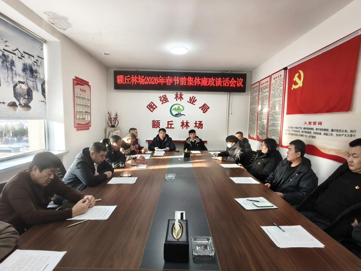 廉政談話明底線,承諾踐諾守初心。額丘林場(chǎng)召開春節(jié)前集體廉政談話會(huì),專題傳達(dá)學(xué)習(xí)上級(jí)關(guān)于春節(jié)期間廉潔過節(jié)的通知要求,原文解讀相關(guān)通知精神與紀(jì)律規(guī)定,確保全體黨員干部精準(zhǔn)把握節(jié)日廉潔核心要義。會(huì)議結(jié)合關(guān)鍵崗位風(fēng)險(xiǎn)特點(diǎn),聚焦違規(guī)收送禮品禮金、違規(guī)吃喝等易發(fā)“節(jié)日病”,明確禁止性要求,督促黨員干部繃緊紀(jì)律之弦。談話會(huì)后,組織全體黨員簽訂《春節(jié)期間廉潔自律承諾書》,承諾書緊扣上級(jí)要求梳理8項(xiàng)核心準(zhǔn)則,從遵守中央八項(xiàng)規(guī)定精神到杜絕違規(guī)操辦婚喪喜慶事宜,逐條細(xì)化規(guī)范,推動(dòng)廉潔要求內(nèi)化于心、外化于行。