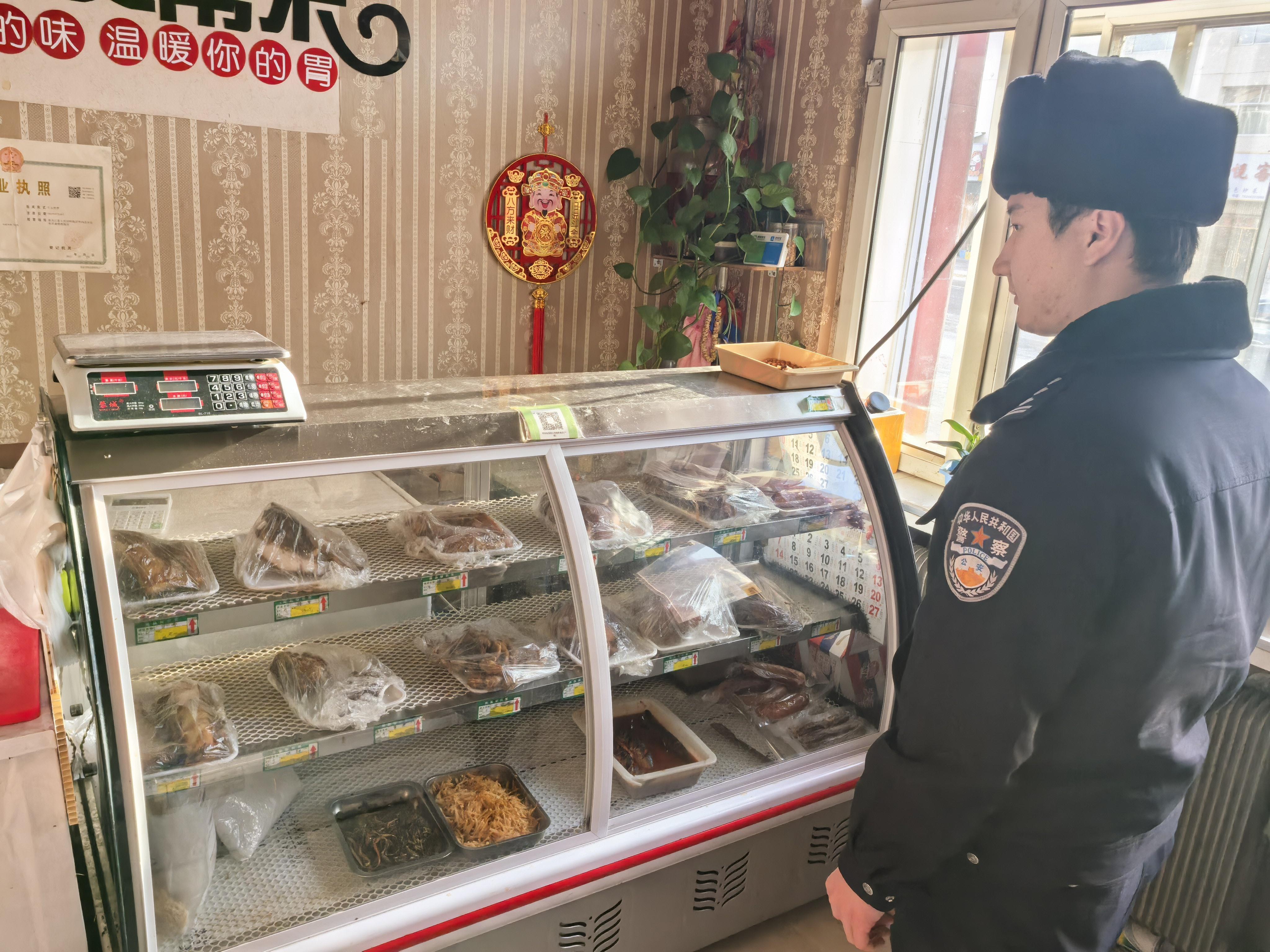 民輔警結(jié)合節(jié)前市場特點,采取“明察暗訪+隨機抽檢”方式,對轄區(qū)肉制品經(jīng)營店鋪開展全面排查。現(xiàn)場檢查中,發(fā)現(xiàn)1家店鋪環(huán)境衛(wèi)生不達標(biāo),執(zhí)法民警當(dāng)即責(zé)令其現(xiàn)場整改。